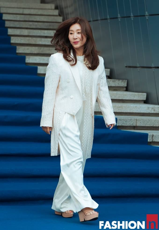 이날 최명길은 품격있는 턱시도 슈트룩으로 세련되면서도 품격있는 패션위크 스타일을 선보였다.