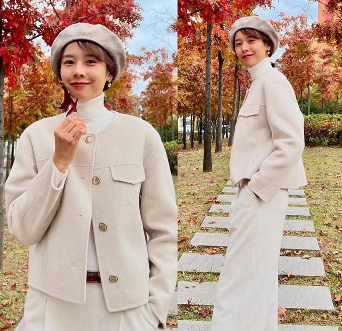공개한 사진에서 조윤희는 라이트 그레이의 베레모를 쓰고 화이트 팬츠와 화이트 터틀넥에 라운드 재킷을 매치한 톤온톤룩으로 멋스럽고 로맨틱한 가을룩을 완성했다.