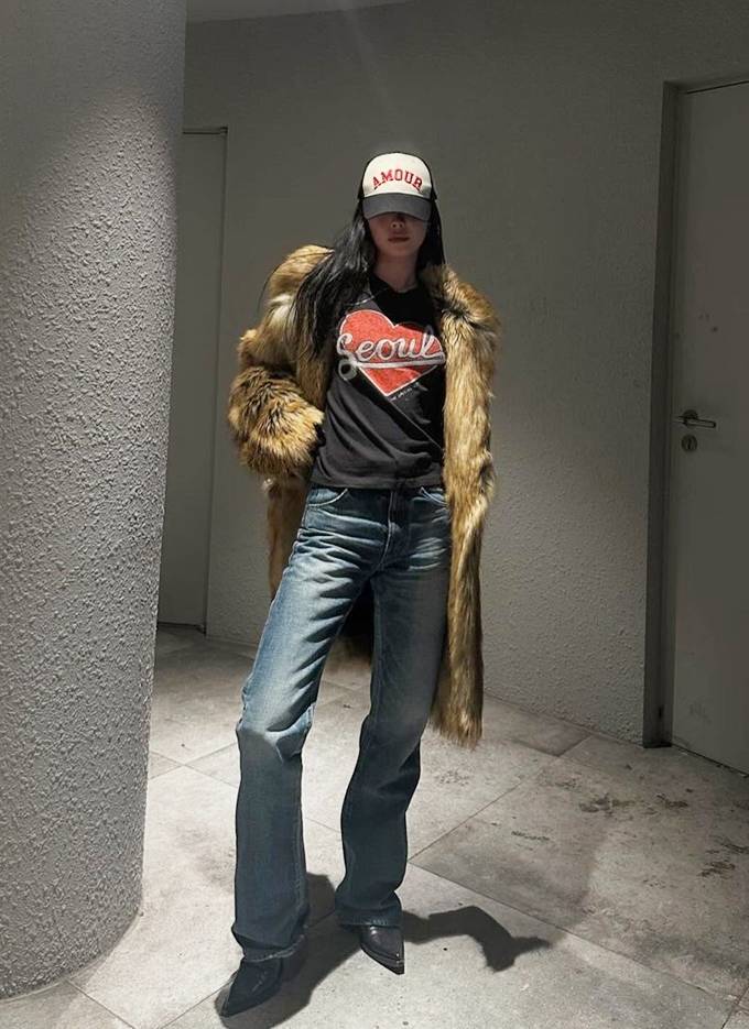 공개한 사진에서 손나은은 데님 팬츠에 블랙 하트 로고 티셔츠를 입고 깃털 퍼 코트를 걸친 데일리룩으로 힙하면서도 럭셔리한 스타일을 선보였다.