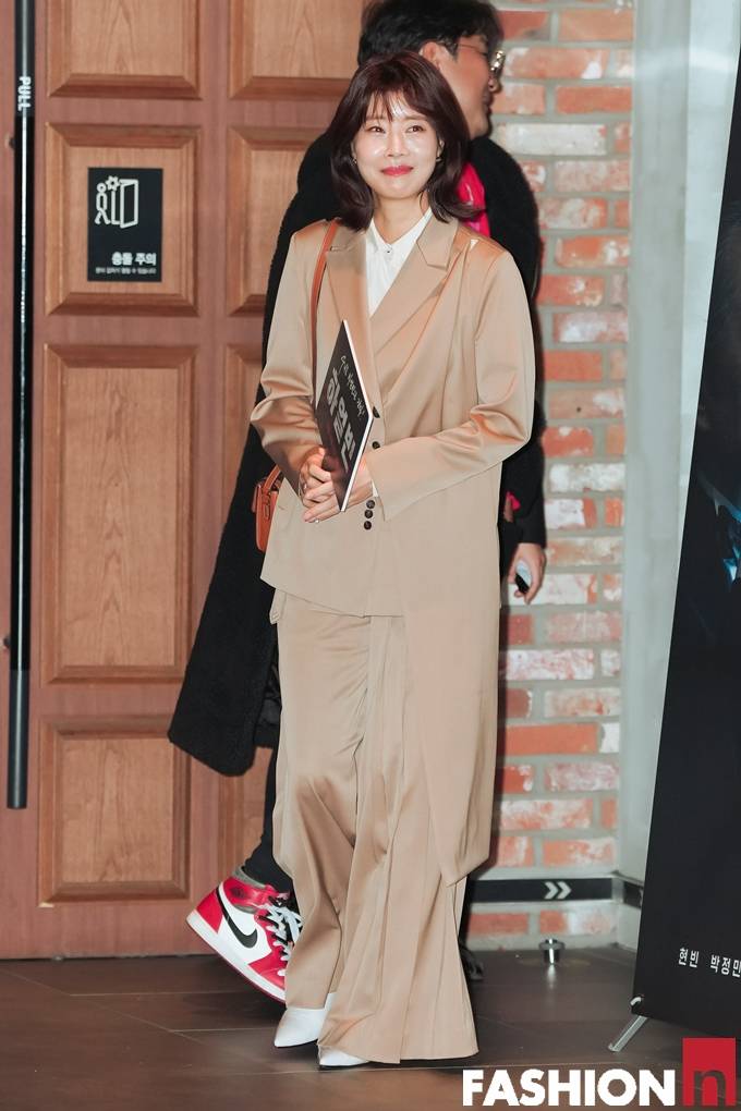 [패션엔 포토] 유선, 시사회를 따뜻하게! 48세 사모님 웜톤 베이지 슈트 나들이룩