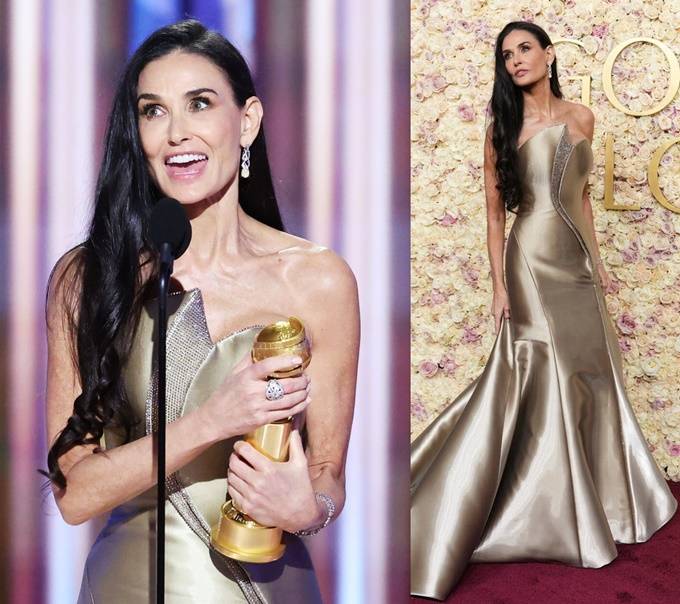 62세 데미 무어, 생애 첫 여우주연상! 나이를 잊은 놀라운 레드카펫 드레스핏