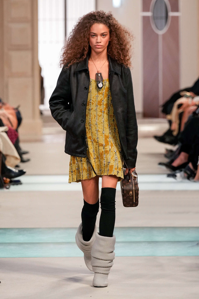 올해로 12년째 루이비통 여성복을 이끌고 있는 니콜라 제스키에르(Nicolas Ghesquière. 54)는 파리의 기차역에서 영감을 받아 레트로 퓨쳐리즘에 대한 디자이너의 독특한 비전을 위한 실험을 지속했다.