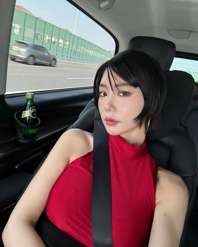 공개한 사진에서 클라라는 숏컷 헤어 스타일에 롱테일 허리띠가 멋스럽게 매치된 핫레드 컬러의 하이넥 슬리브리스 미니 원피스룩으로 AI인형 미모를 과시했다.