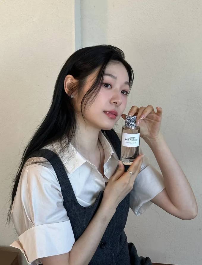 또 내추럴한 웨이브 헤어 스타일에 수수한 메이크업, 그리고 손에 든 명품 향수로 우아하면서도 은은한 매력을 발산했다.