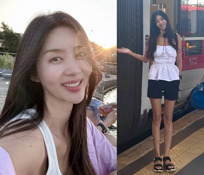 공개한 사진에서 박솔미는 늘씬한 각선미가 드러난 블랙 쇼츠에 화이트 나시 페블럼 블라우스를 입고 러블리하면서도 쿨한 대학생 여친 같은 여행룩을 선보였다.