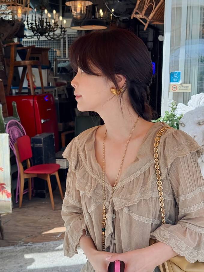 기은세, 시간이 멈춘 듯! 레트로&로맨틱 시스루 블라우스 이태원 쇼핑룩