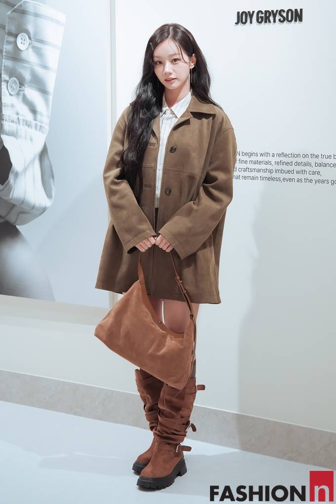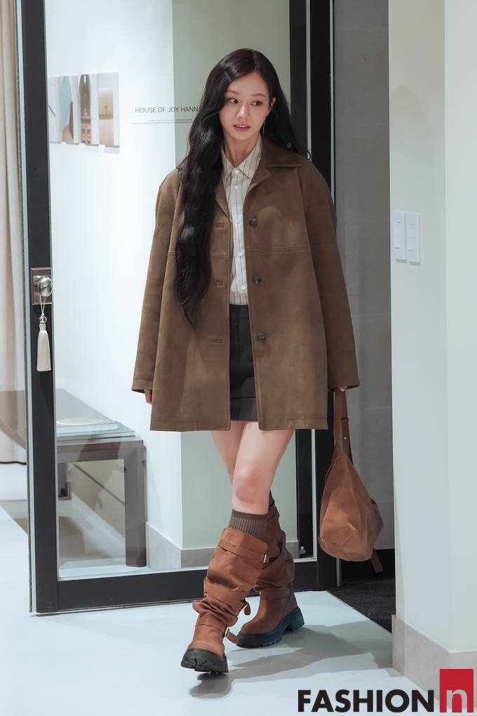 여기에 톤온톤 스웨이드 부츠와 백을 더해 통일감 있는 스타일링을 완성, 고급스럽고 따뜻한 무드를 배가시켰다.