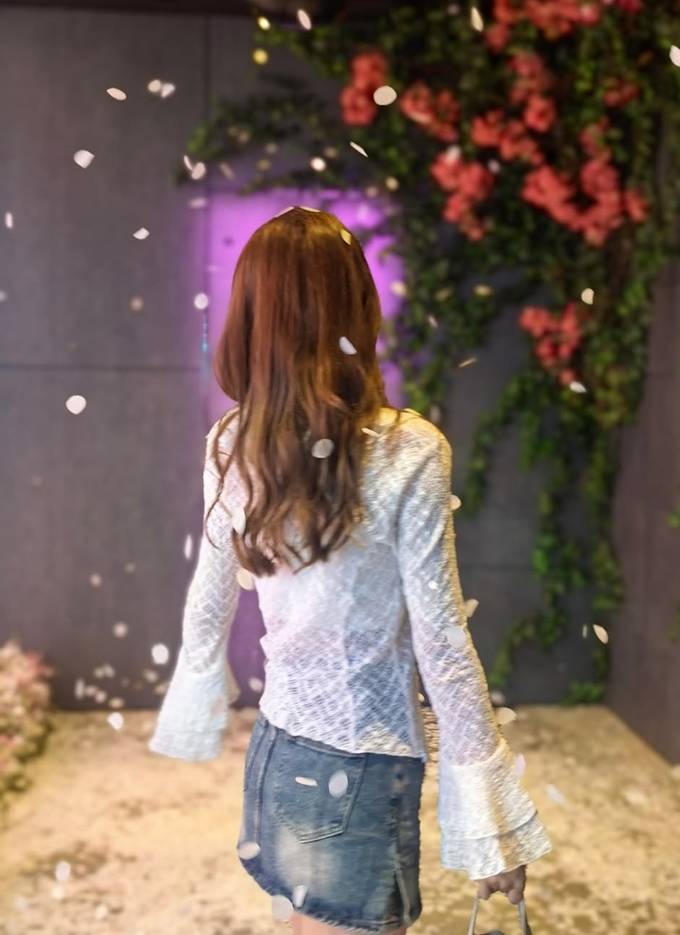 공개한 사진에서 이다해는 은은한 시스루 디테일의 화이트 블라우스에 데님 미니 스커트를 매치한 여행 데일리루으로 산뜻하면서도 여성스러운 분위기를 완성했다. 특히 벨 슬리브 디자인의 블라우스로 여리여리한 실루엣을 연출하며, 플라워 배경과 어우러져 로맨틱한 무드를 한층 배가시켰다.