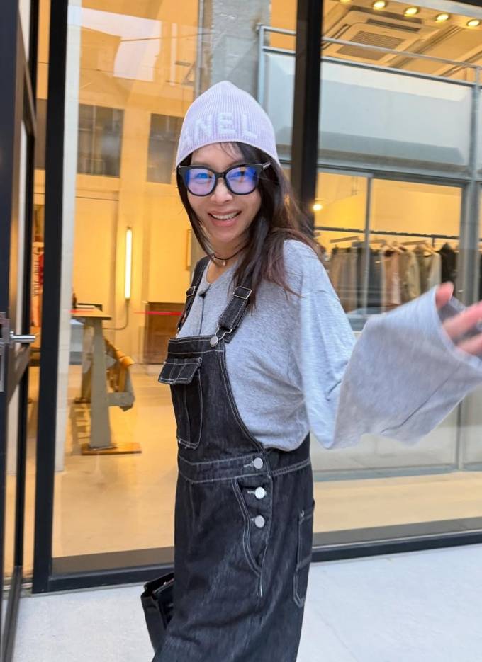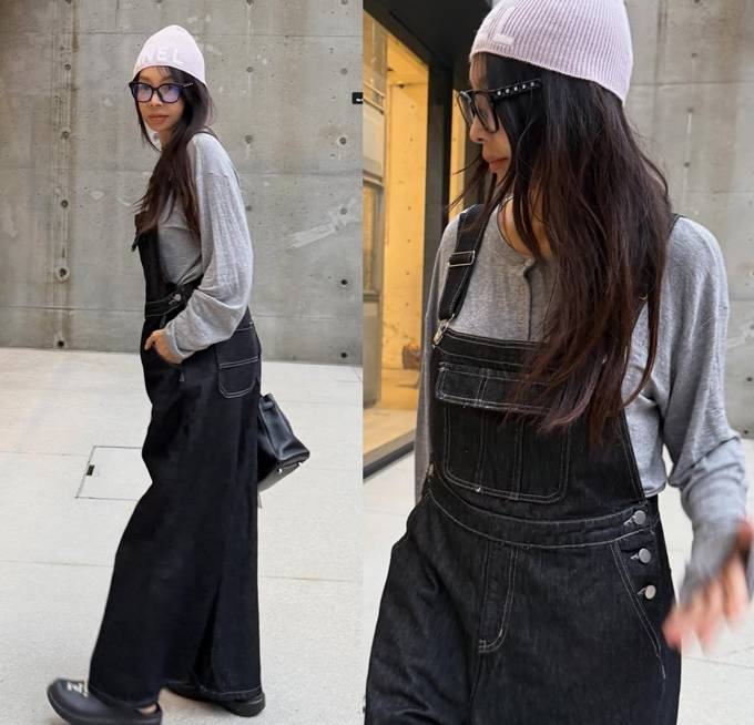 공개한 사진에서 황신혜는 그레이 톤의 긴팔 티셔츠에 블랙 와이드 핏 멜빵 팬츠를 매치해 체형을 자연스럽게 커버하면서도 세련된 실루엣을 완성했다.