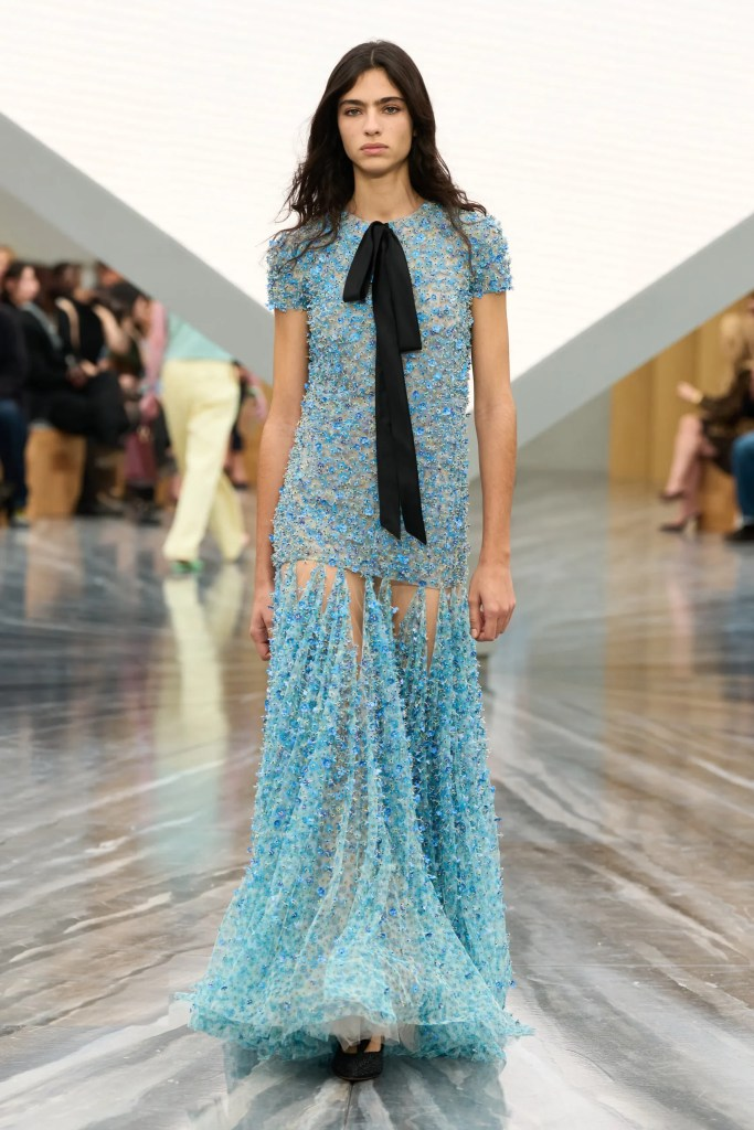 특히 꽃무늬 액센트부터 하우스의 시그니처 리본 장식까지 조화와 긴장감을 절묘하게 조화시키며, 웅장함과 단순함, 과거와 현재를 향수를 불러일으키는 쇼의 모든 요소가 시선을 사로잡았다.