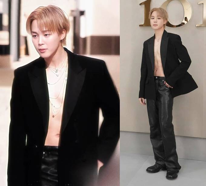 방탄소년단 지민, 난리난 파리 패션위크! K팝 스타의 가슴 풀어헤찬 블랙 슈트핏