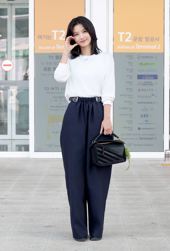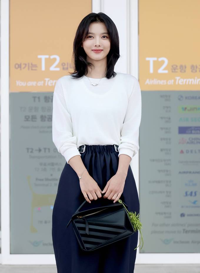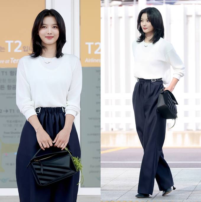 배우 김유정이 깔끔하면서도 세련된 모던룩으로 공항을 환하게 밝혔다.