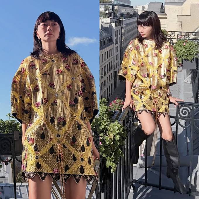 배두나, 파리 들썩인 이집트 여왕 자태! 황금빛 아우라 뽐낸 하의실종 골드룩