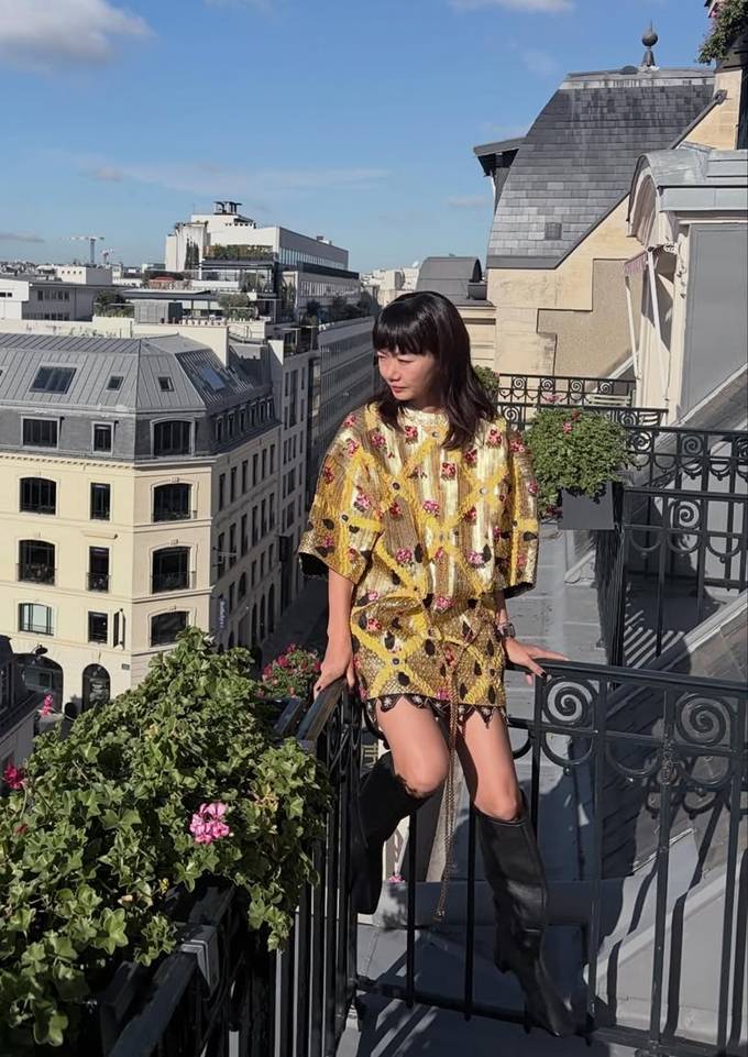 공개한 사진에서 배두나는 골드 컬러가 돋보이는 미니 드레스에 블랙 롱 부츠를 매치해 강렬하면서도 세련된 분위기를 연출했다.