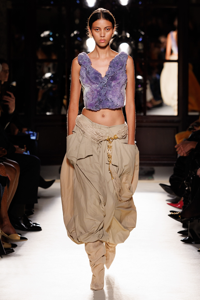 '감정의 연속성’을 주제로 섬세한 드레이프, 시스루, 구조적인 디테일, 흐르는 실루엣, 유기적인 소재가 완벽한 조화를 이루고 미니어처 조개껍질, 반짝이는 크리스털, 구불구불한 매크라메, 술 장식 가죽이 컬렉션에 질감, 차원, 볼륨을 더해 새로운 발망룩을 창조했다.