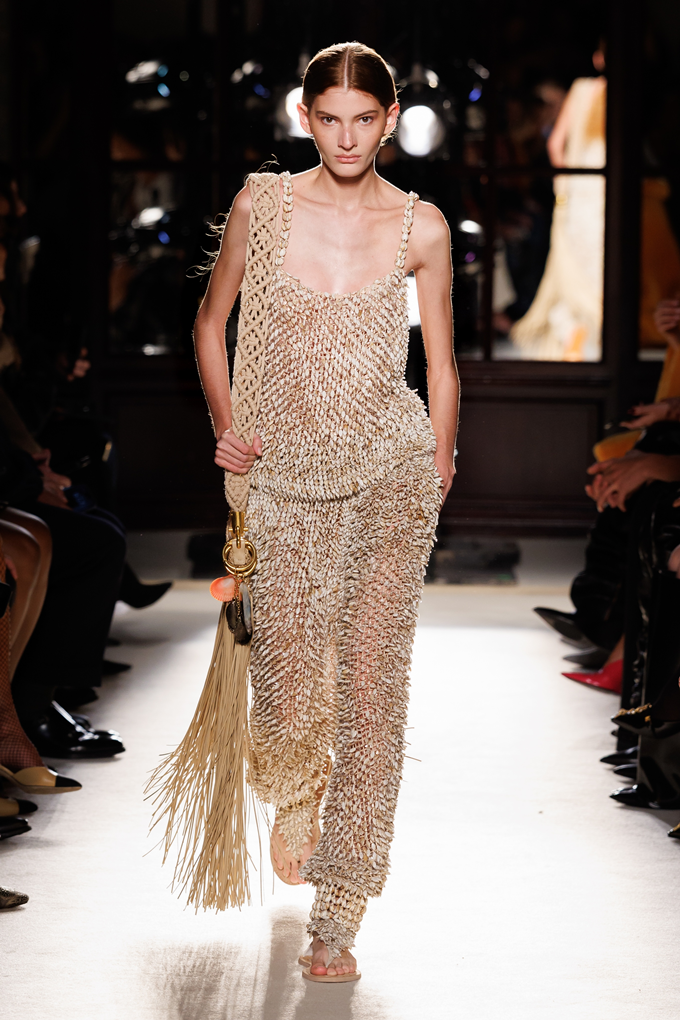 이번 2026 S/S 컬렉션은 과거 하우스 코드를 규정했던 화려하고 경직된 스타일을 벗어나 완전히 다른 방식으로 개인적인 열망이 융합된 해변 보헤미안 미학을 을 담았다.
