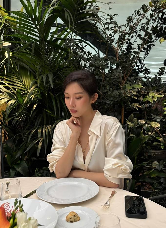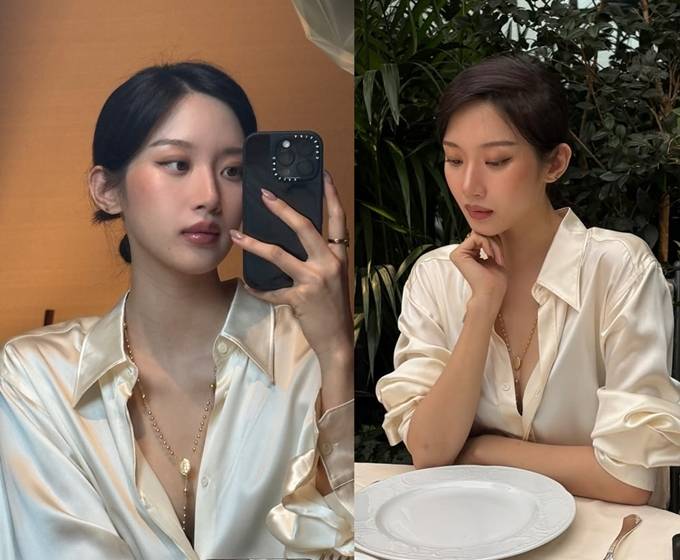 공개한 사진에서 문가영은 은은하게 빛나는 실크 소재의 셔츠로 우아하면서도 고급스러운 분위기를 자아냈다.