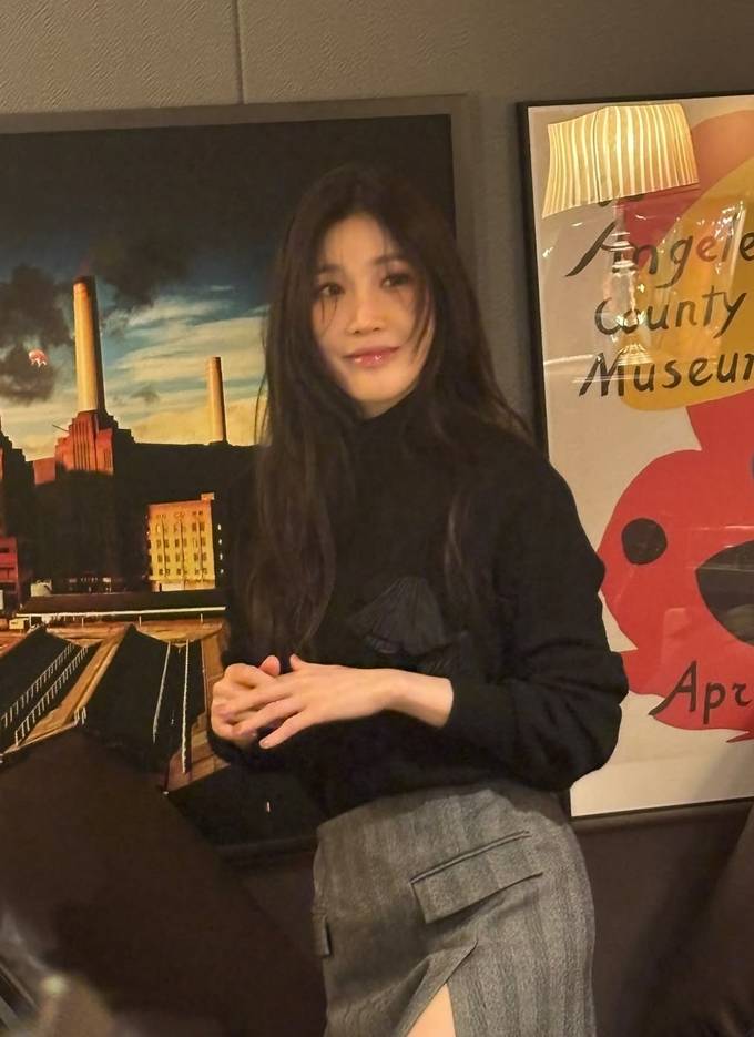 공개한 화보 컷에서 이해리는 블랙 니트 톱에 그레이 컬러의 대담하면서도 단정한 하이슬릿 스커트로 세련된 데일리룩을 선보였다.