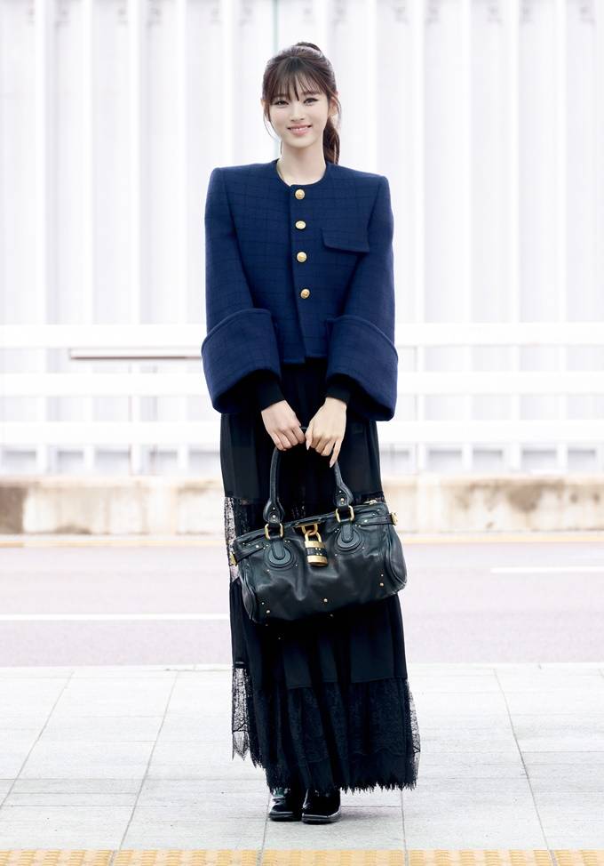 미야오 안나, 자유분방함과 우아함이 깃든 보헤미안 시크룩 파리 패션쇼 출국