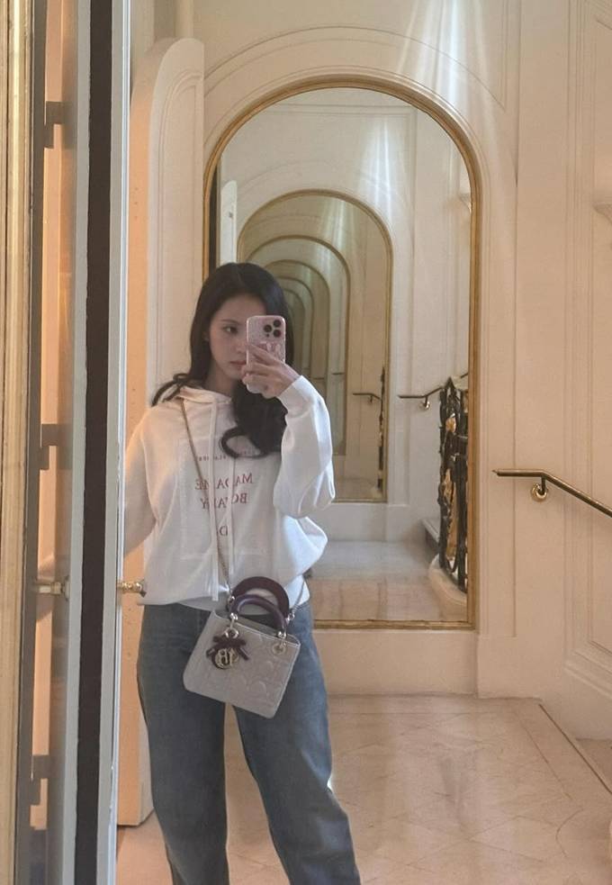 블랙핑크 지수, 파리 디올쇼 끝내고 힐링 타임! 맨투맨 하나로 끝낸 자유 만끽 데일리룩