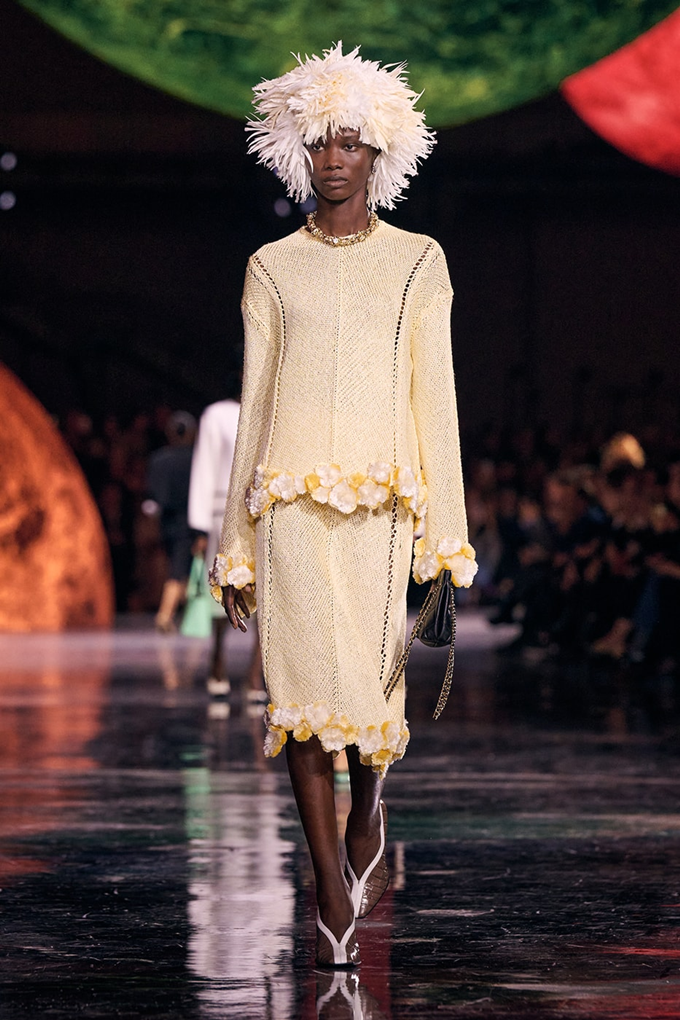 풍성한 프린지 스커트, 아름답게 드레이핑된 드레스, 그리고 정교하게 배치된 플로럴 아플리케가 돋보이는 세트 아이템들이 잇달아 선보여졌다.