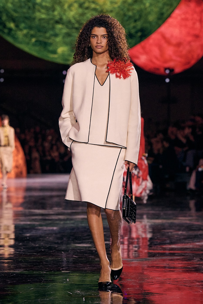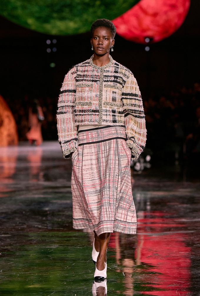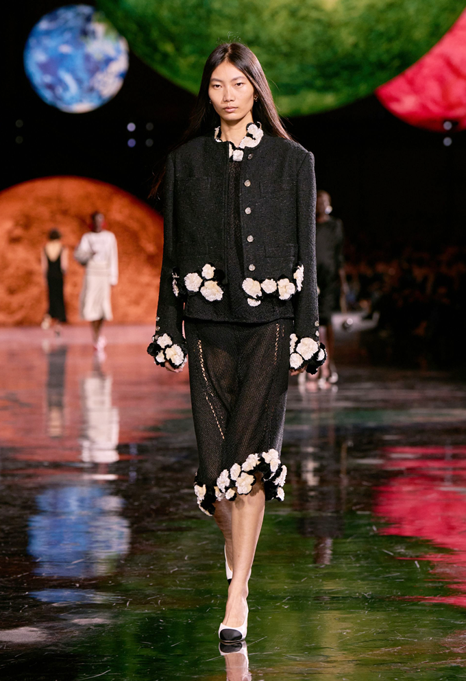 트위드, 실크, 진주 목걸이, 블랙앤화이트 색상 구성, 박시한 실루엣 등 샤넬을 상징하는 시그니처 코드와 아이템을 능숙하게 재해석했다.