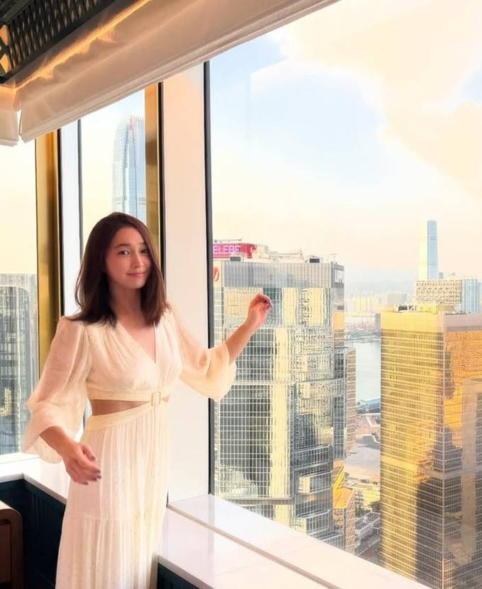 공개한 사진에서 이민정은 홍콩 도시 뷰가 내려다 보이는 호텔에서 깊은 브이넥과 허리 컷아웃 디테일이 돋보이는 시스루 롱 드레스룩으로 섹시하면서도 여성스러운 분위기를 드러냈다.