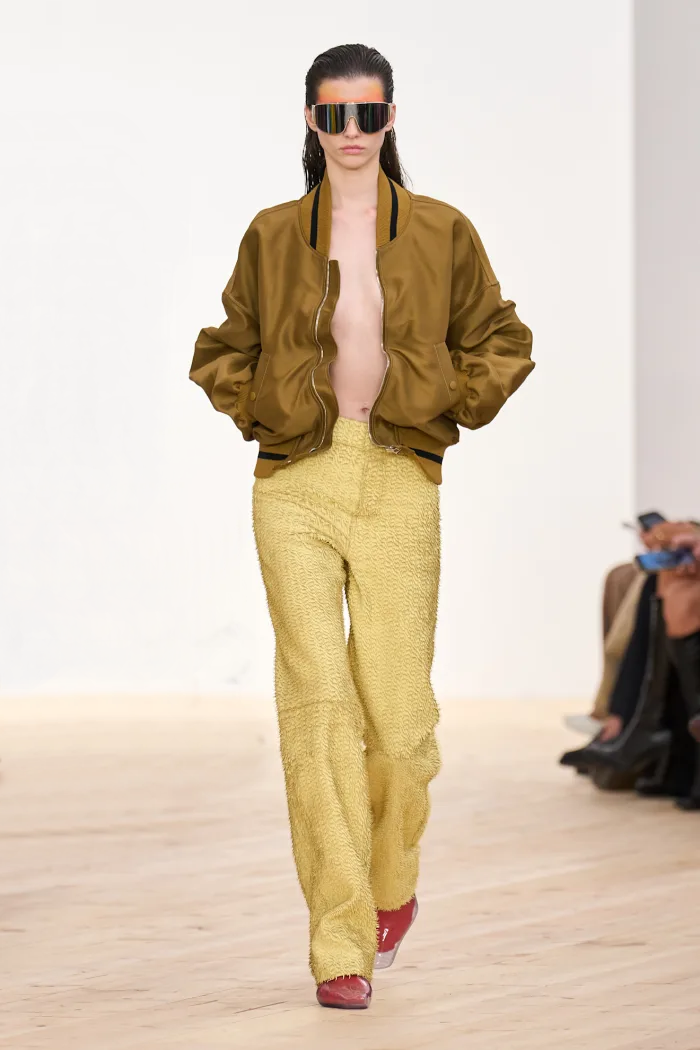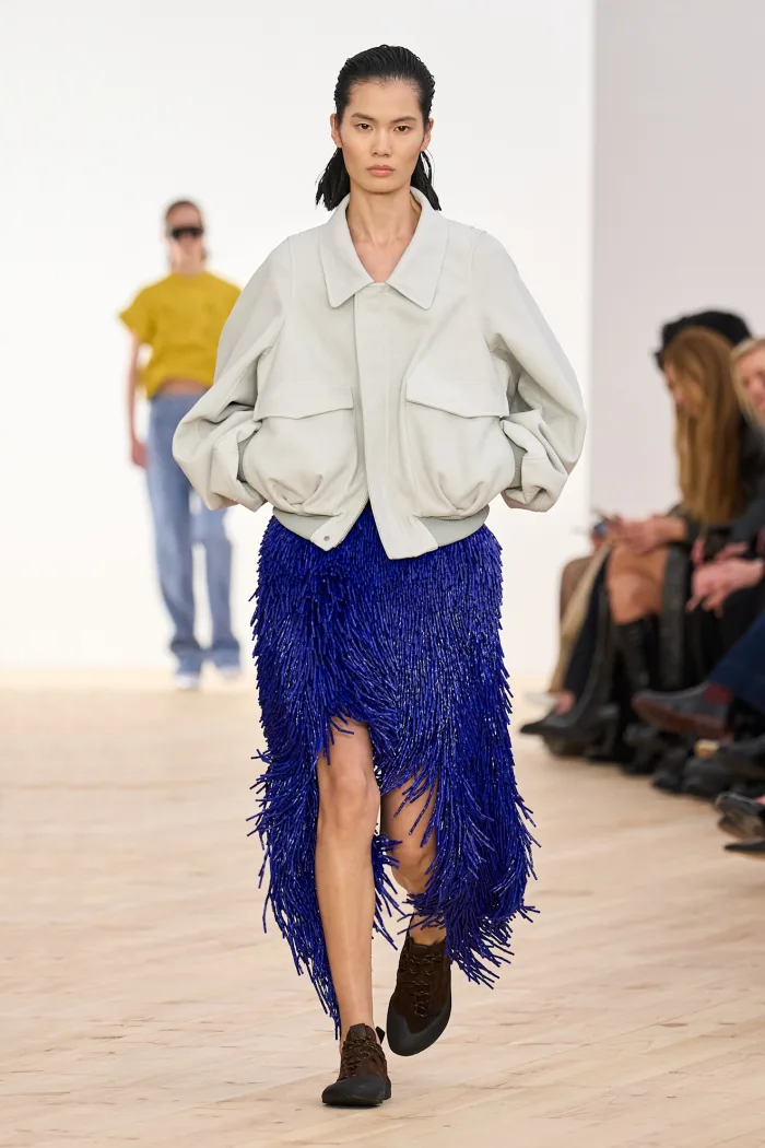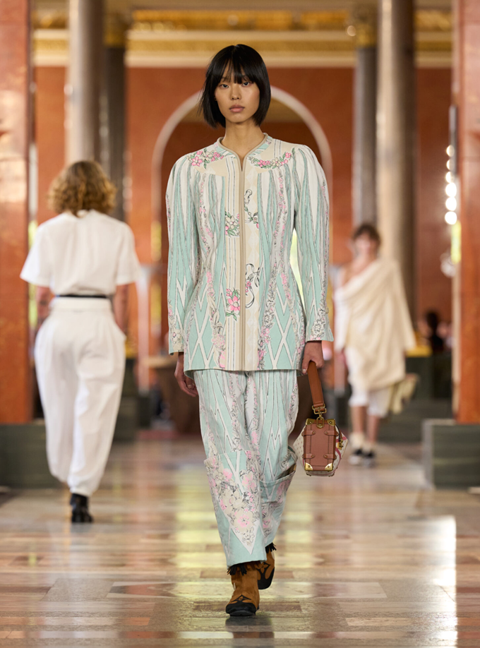 루이비통은 느슨한 로브 코트, 시스루 슬립, 그리고 부드러운 레이어링과 무게감 없는 루즈한 테일러링으로 집과 같은 편안함과 자유로움을 전달했다.