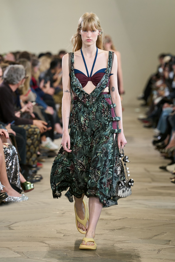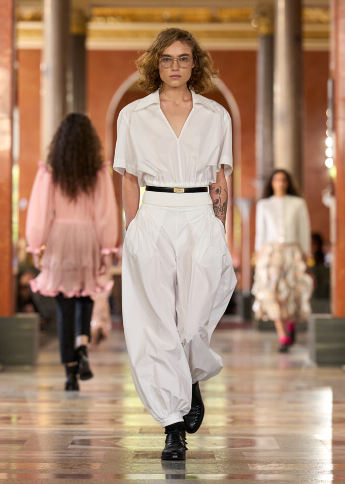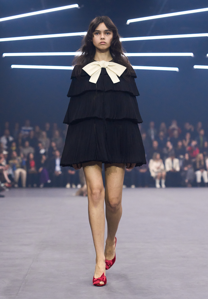 미우 미우는 공장에서 가정까지 역사 속 여성들의 고된 삶과 고통을 담고 있는 앞치마를 가죽, 캔버스, 레이스, 실크 클로케 등 예상치 못한 소재로 변주하며 책임감과 회복력으로 가득 찬 진정한 여성의 삶을 조명했다.