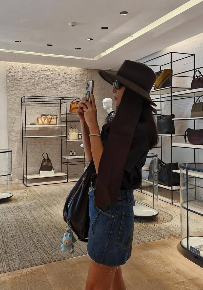 공개한 사진에서 고소영은 블랙 반오픈 셔츠에 미니 데님 스커트를 매치한 외출룩으로 심플하면서도 감각적인 스타일을 연출했다.