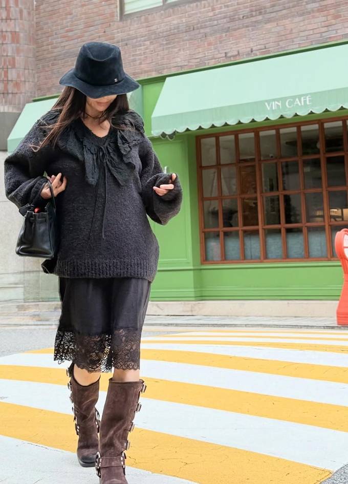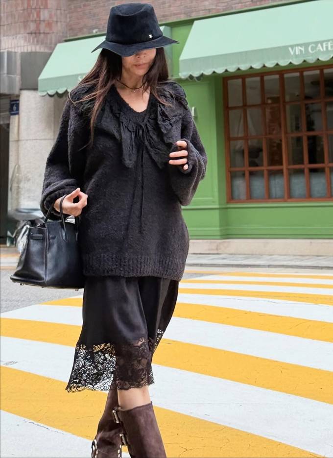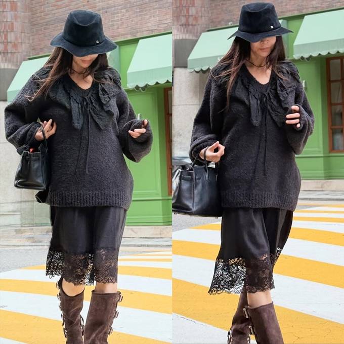 3. 3.황신혜, 가을 거리 올스톱! 나이 거스른 60대 패셔니스타의 니트&레이스 올 블랙룩