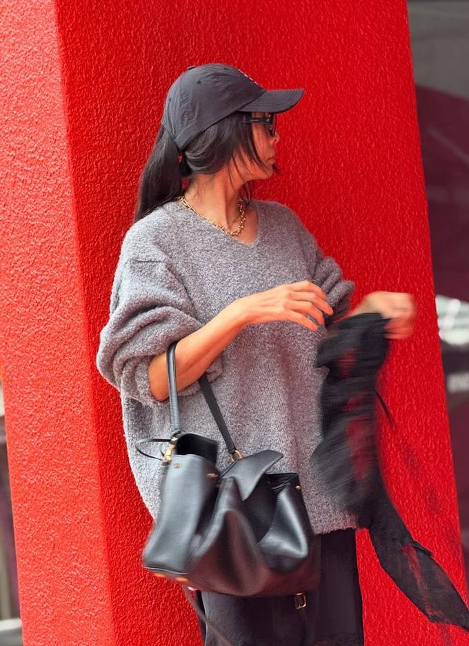 또 여기에 블랙 페도라와 미니멀한 블랙 백을 매치해 클래식하면서도 모던한 가을 외출 스타일을 완성했다.