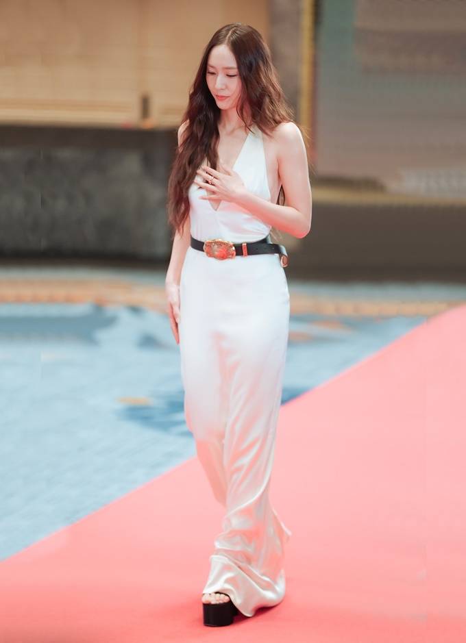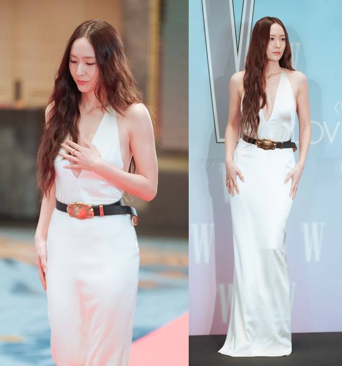 가수 겸 배우 정수정(크리스탈)이 하이 클리비지의 화이트 드레스룩으로 매혹적인 자태를 빛냈다.