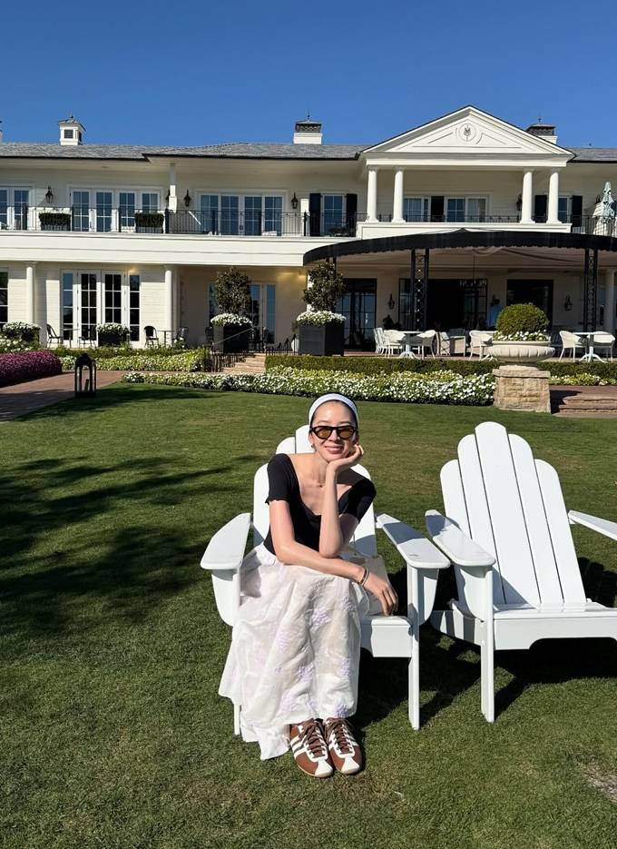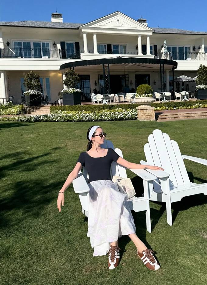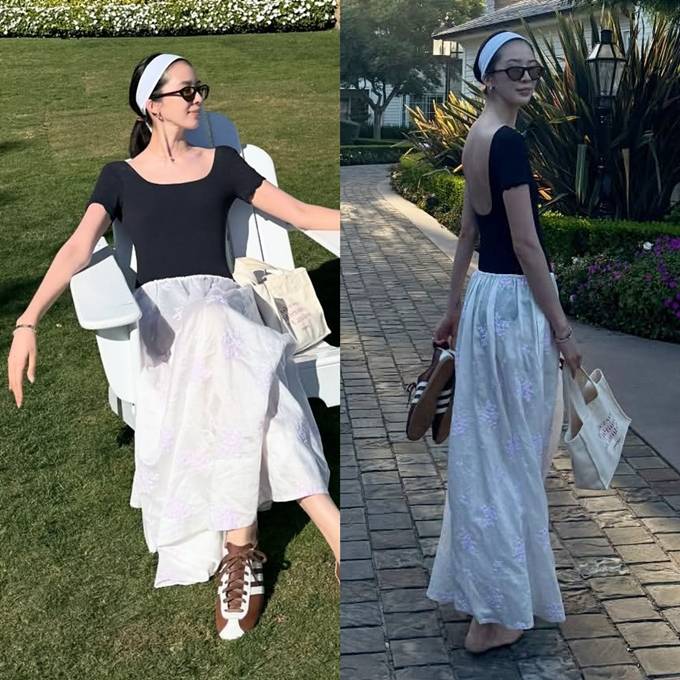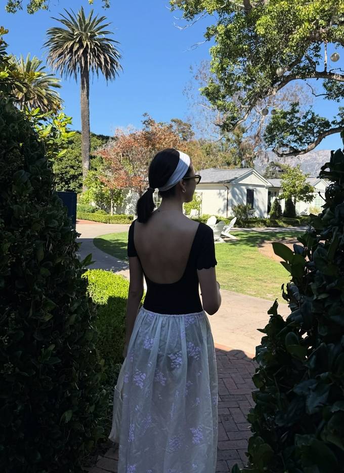 모델 아이린, 뒤태까지 예쁜 가을 새댁! 블랙 바디슈트에 화이트 스커트 캘리포니아 리조트룩