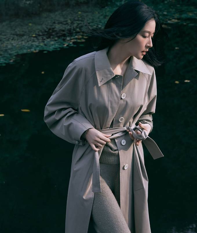 배우 이영애가 트렌치코트와 실크 드레이핑 드레스로 영화의 한 장면 같은 가을의 품격을 드러냈다.