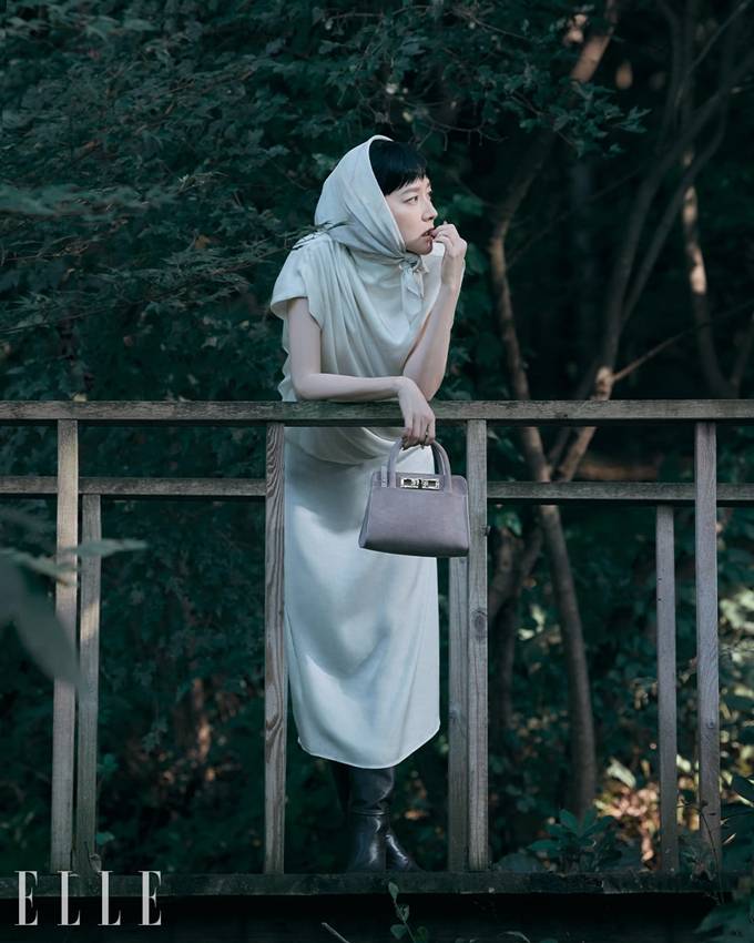 또 다른 화보에서는 실크 드레이핑 드레스와 후드 디테일을 더한 스타일링으로 몽환적인 무드를 자아냈다.
