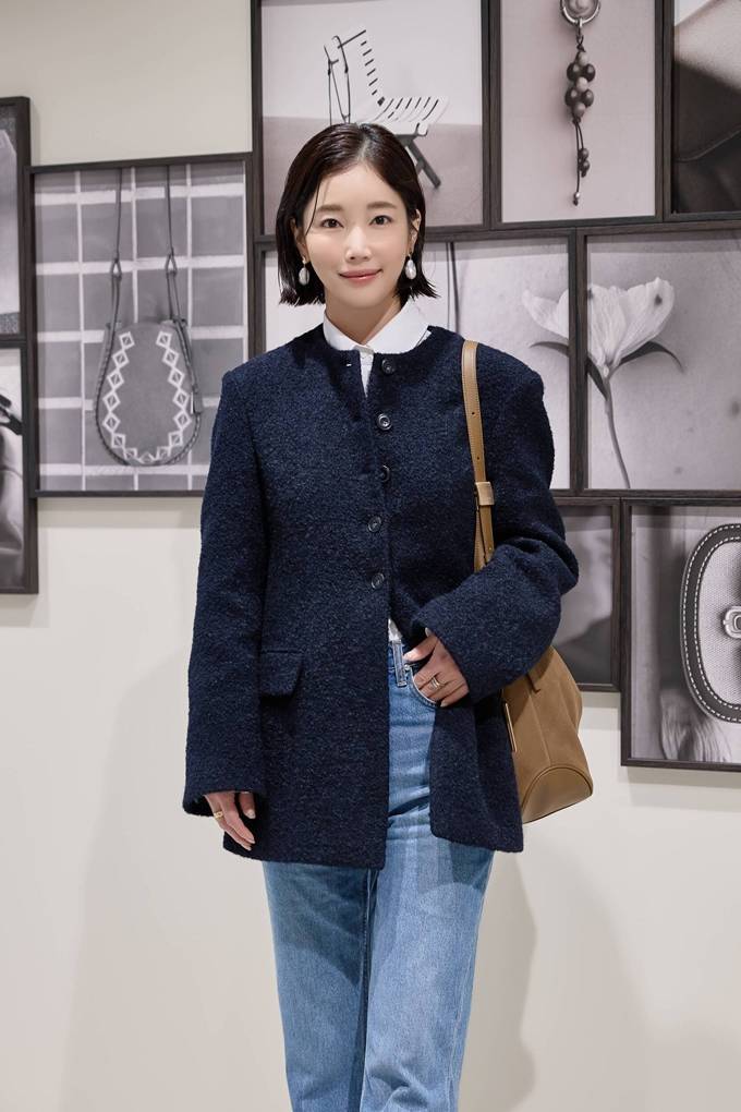 또 기은세는 클래식한 네이비 컬러 트위드 재킷에 골드카키 호보백을 착용해 사복장인다운 스타일리시하면서 클래식한 가을룩을 완성했다.