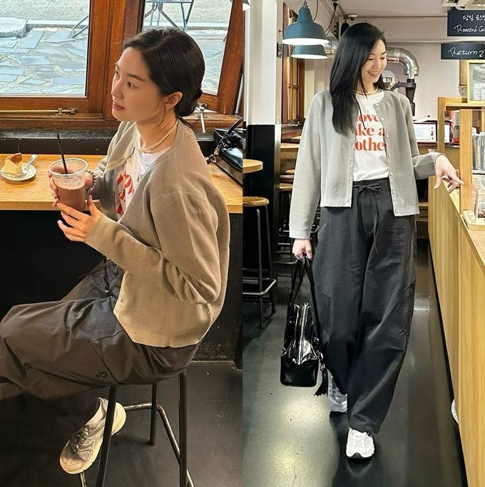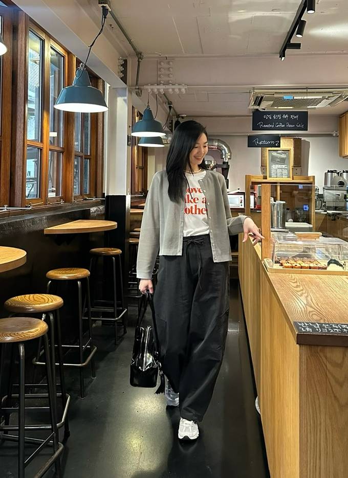 공개한 사진에서 류이서는 화이트 티셔츠 위에 밝은 그레이 컬러의 카디건을 매치해 산뜻한 느낌을 더했고, 루즈한 핏의 블랙 팬츠로 여유 있는 실루엣을 완성했다.