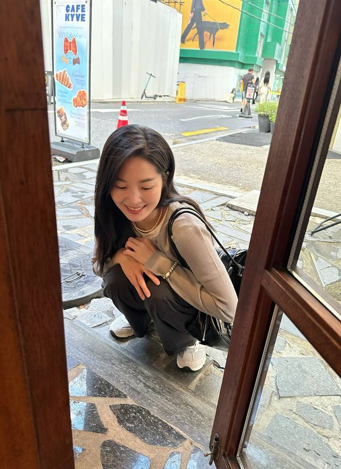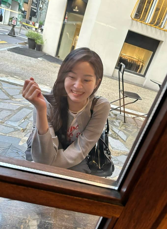 여기에 블랙 토트백과 화이트 스니커즈를 매치해 꾸안꾸 감성을 한층 높였으며, 긴 생머리와 환한 미소로 러블리한 매력까지 더했다.