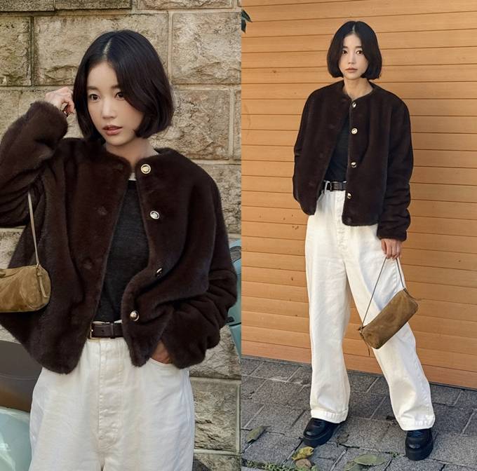 여성들의 워너비 스타일 아이콘으로 꼽히는 기은세는 브라운 컬러의 에코 퍼 재킷을 착장해 심플하면서도 트렌디한 데일리룩을 선보여 눈길을 끌었다.
