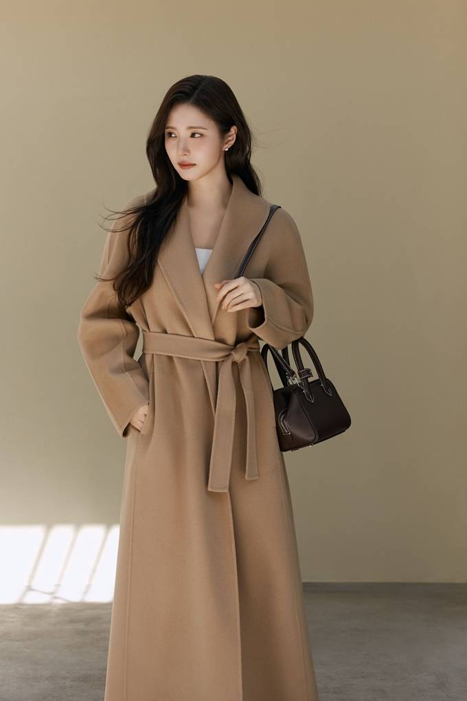 또 클래식한 카멜 컬러의 롱 코트로 고급스러운 분위기를 연출했다. 루즈한 실루엣에 벨트로 포인트를 더해 여리여리한 라인을 강조했으며, 브라운 미니백을 매치해 세련된 출근룩으로도 손색없는 스타일을 완성했다.