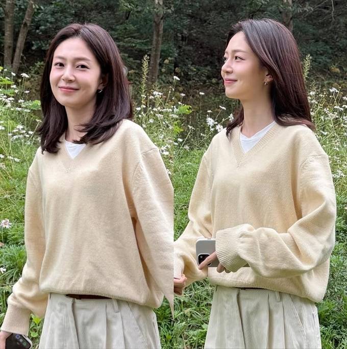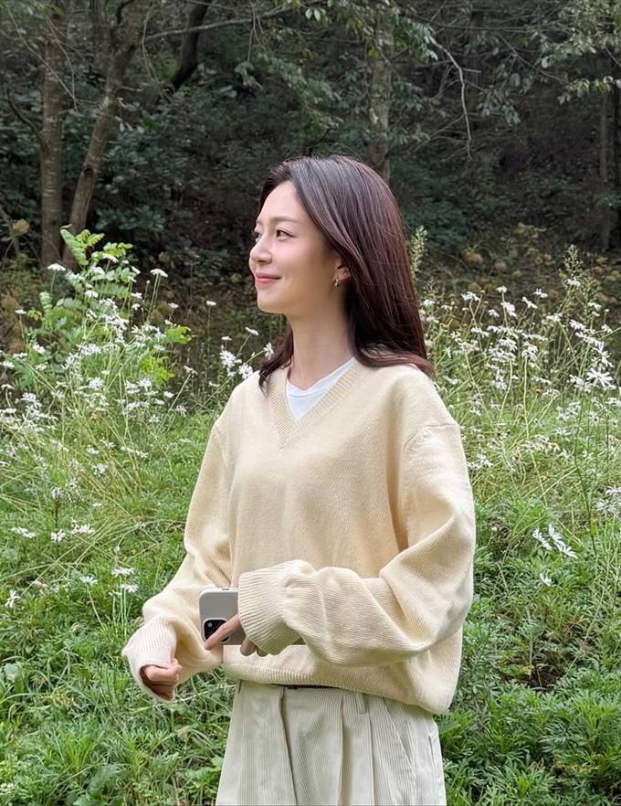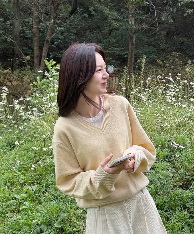 백진희, 가을 들꽃 보다 예쁜 미소! 가을가을한 니트 스웨터 레이어드 데일리룩