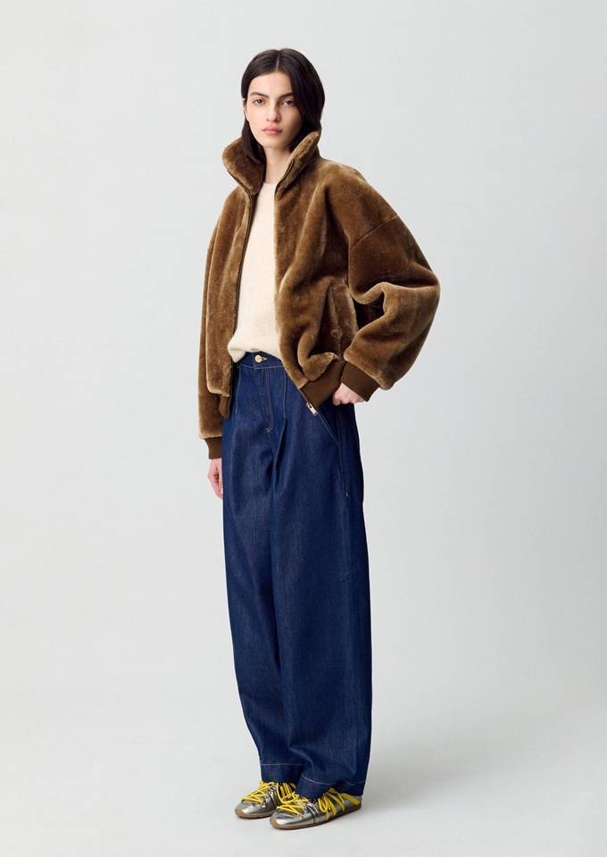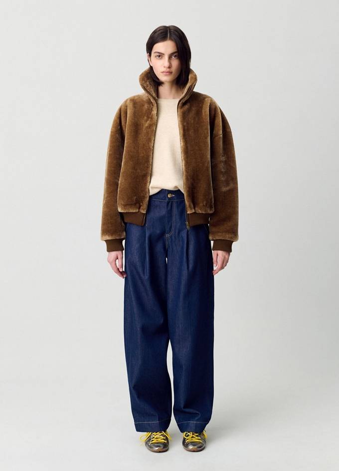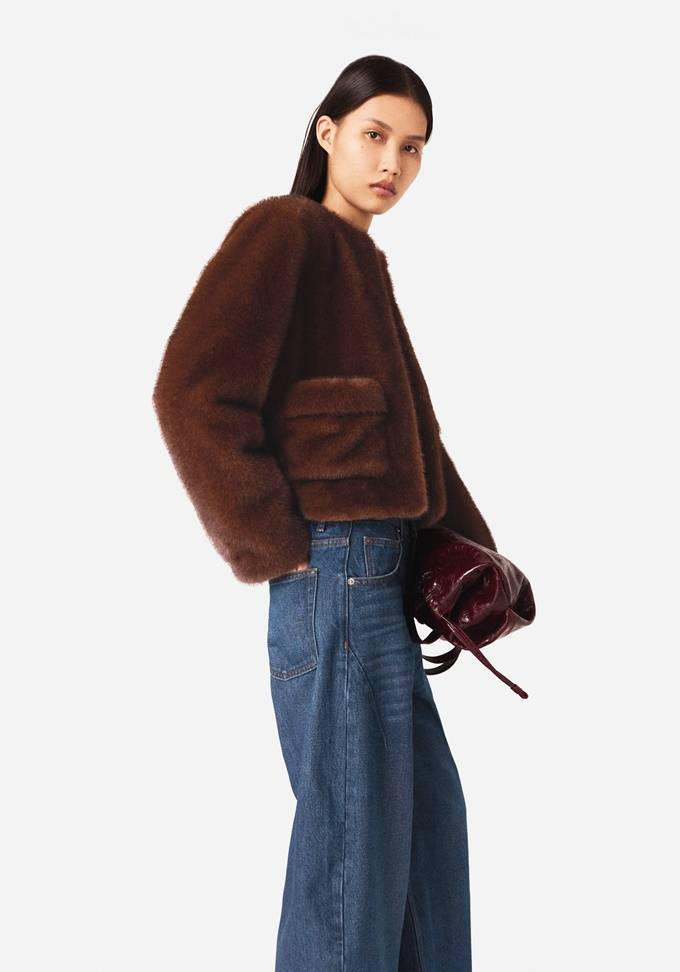 프렌치 컨템포러리 브랜드 '마쥬(MAJE)'의 페이크퍼 크롭 재킷은 벨벳같은 부드러운 소재감과 짧은 기장이 조화를 이루며 발랄한 무드를 선사한다.