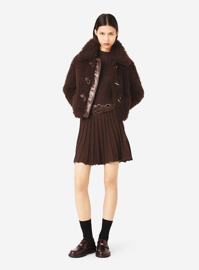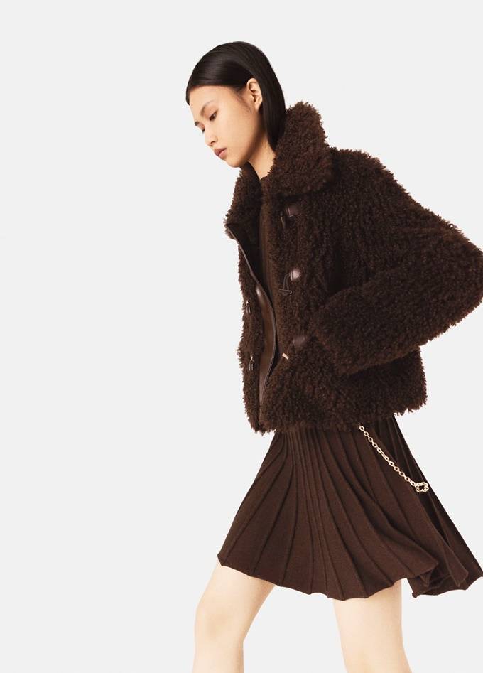 프렌치 컨템포러리 브랜드 '마쥬(MAJE)의 컬리 퍼 재킷은 메탈-로프 버클 장식의 꾸띄르적 디테일, 구조적인 컷팅이 조화를 이룬 영앤리치의 겨울 프렌치룩 연출에 제격이다.