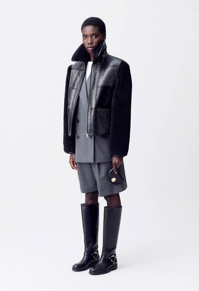프렌치 컨템포러리 브랜드 '끌로디 피에로(CLAUDIE PIERLOT)' 페이크 퍼 레더 재킷은 소매와 사이드에 퍼 소재를 믹스하여 입체적인 텍스처를 강조한 아이템으로 펑키한 분위기를 연출한다.