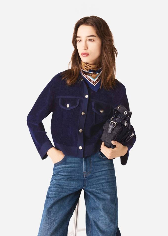 프렌치 컨템포러리 브랜드 '마쥬(MAJE)의 코듀로이 크롭 카디건은 편안함과 스타일리시함의 사이에서 완벽한 균형을 자랑한다.
