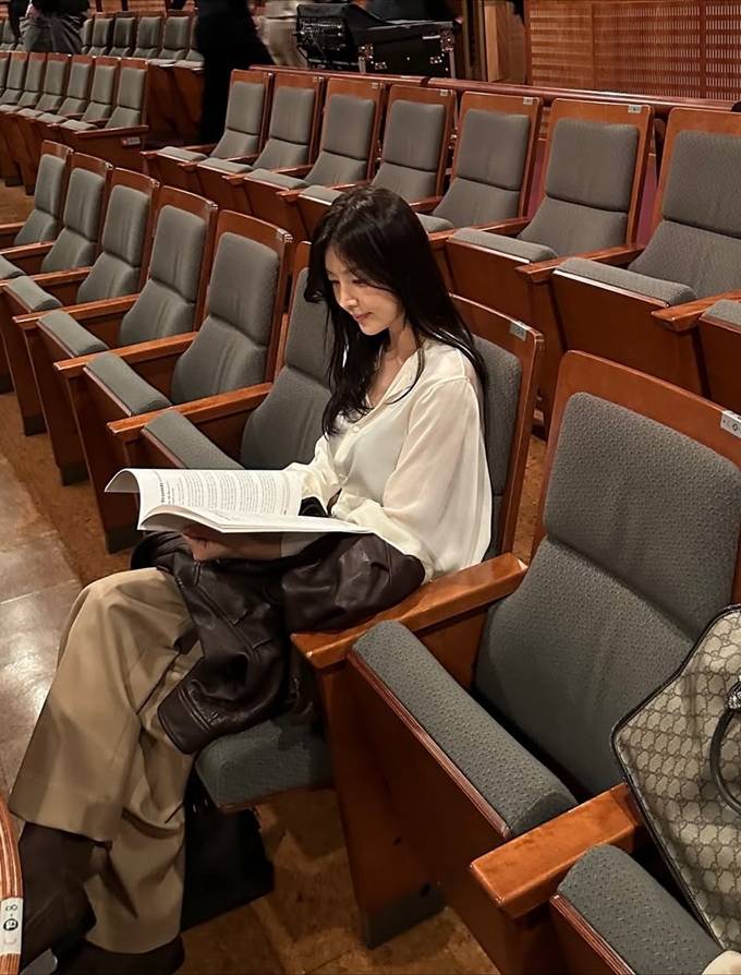 여기에 한지혜는 미니멀한 블랙 백과 가죽 재킷을 더해 클래식 공연장에 어울리는 시크한 감성을 완성했다.