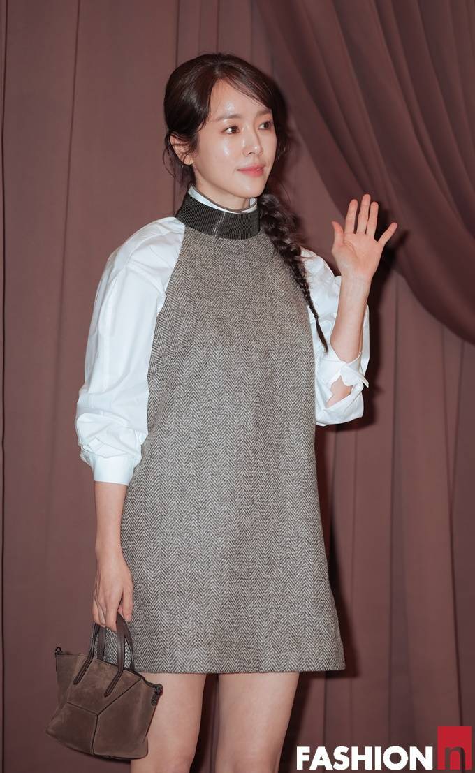한지민은 이날 헤링본 터틀넥 원피스로 사랑스러운 매력을 연출했다.