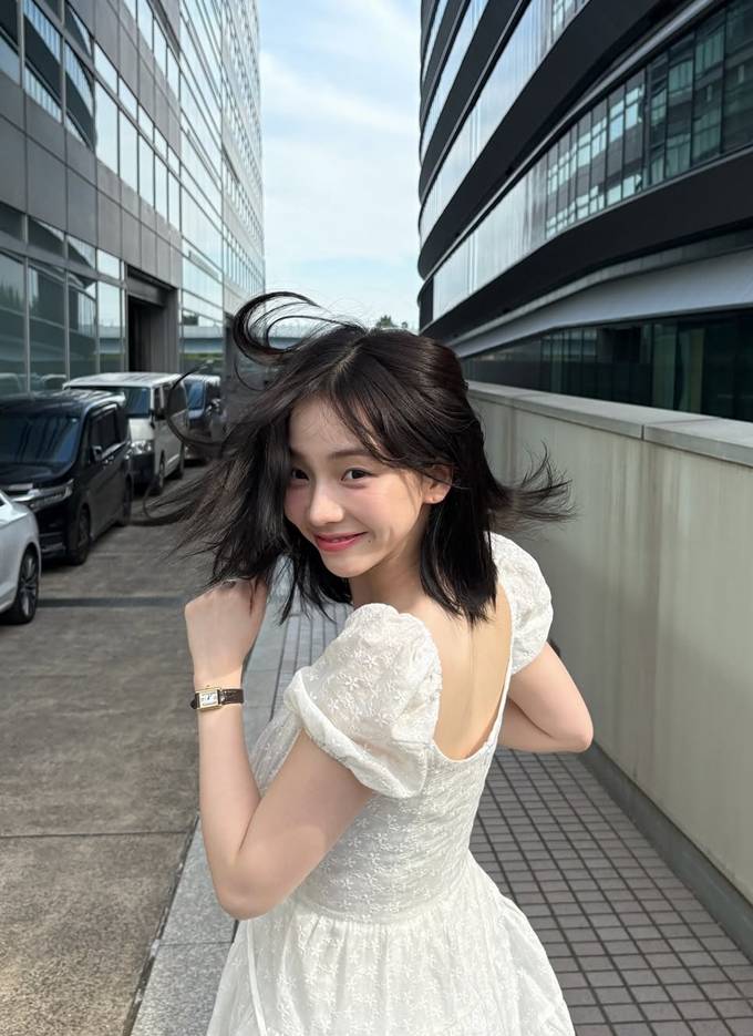 그룹 에스파의 카리나가 화이트 스모크 원피스룩으로 청순 여친미를 발산했다.