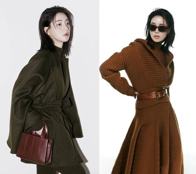 화보 속 임지연은 맥시 길이 풀 스커트, 니트웨어, 로브 스타일 코트 등 미니멀하고 클래식한 막스마라 룩을 완벽하게 소화했다.